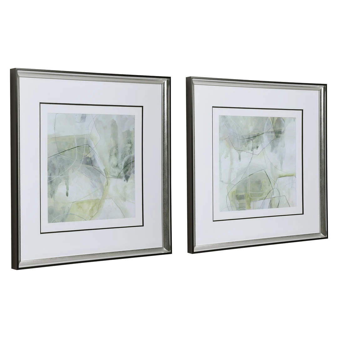 Sporting Cool Shades Of Emerald, Sage, And Olive Green, These Contemporary Framed Prints Add The Perfect Amount Of Color And Sophistication. Each Print Is Accented By Triple Black And White Matting Under Glass With A Sleek Polished Silver Frame.