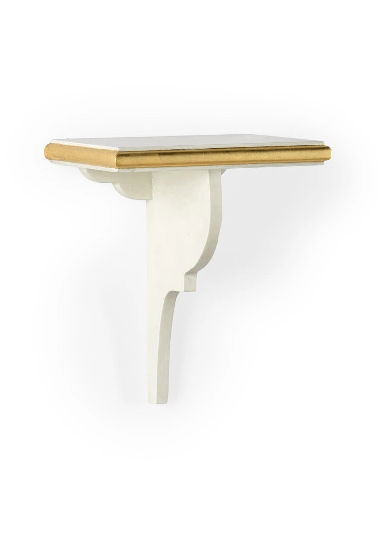 Wooden Wall Bracket In Cream With Metallic Gold Trim.