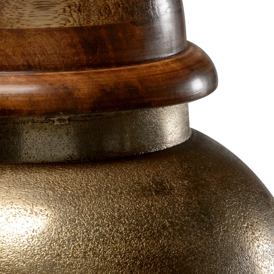 Antique Brass Finish On Cast Aluminum Urn With A Lacquered Mango Wooden Lid