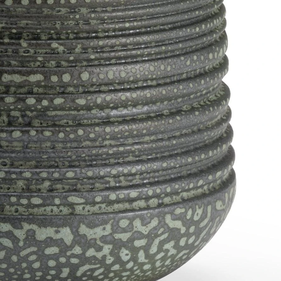 Hand-Thrown Porcelain Ribbed Vessel With Gray Patina Reactive Glaze. Color Variations Or Shadings Are Typcial Of This Handcrafted Glazed Porcelain