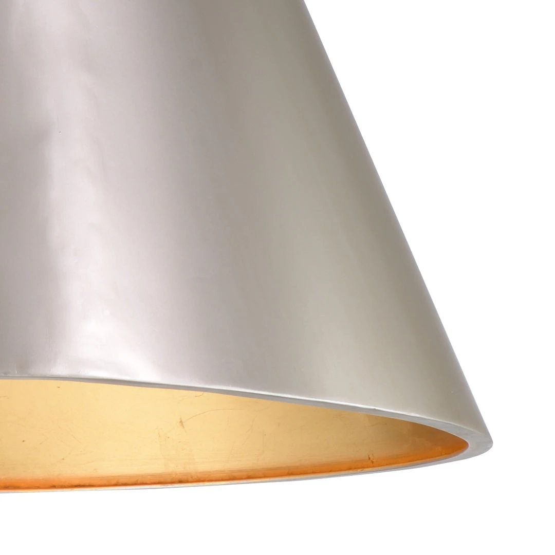 Champagne Finish On Cone Shaped 4 Light Pendant With Antique Gold Leaf Interior, Comes With 1-6″ And 3-12″ Extention Rods.