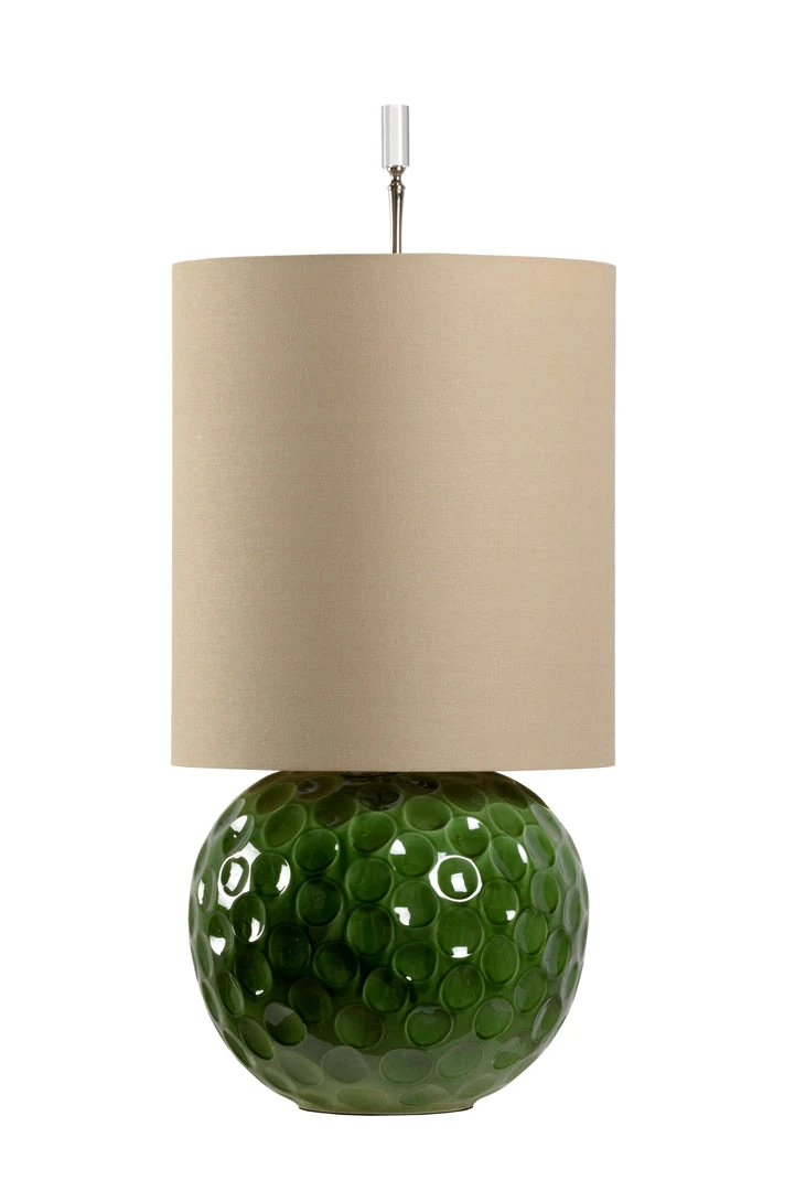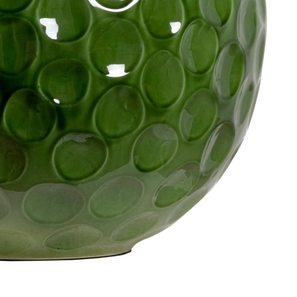 Hand Made Porcelain Sphere With Hand Carved Texture And Pine Green Glaze.