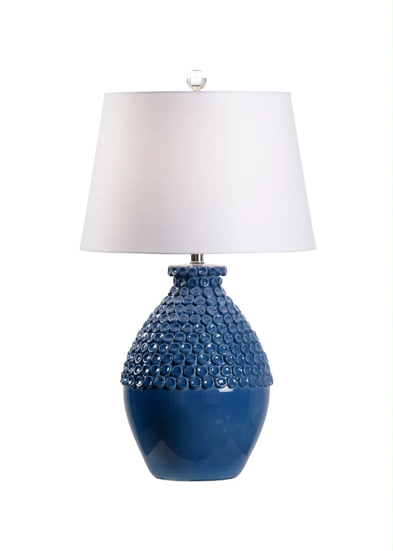 Blue Glazed Ceramic Lamp With Raised Dot Design, Made In Italy.