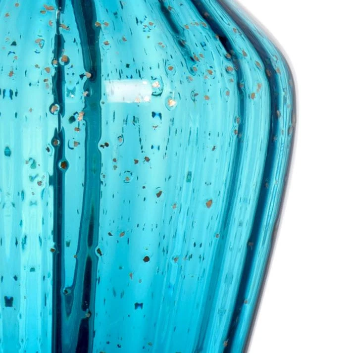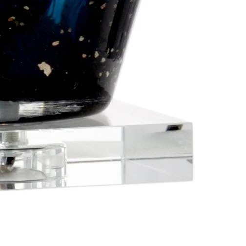 Blue Bubble Glass Vase With Metallic Copper Flecks, Clear Crystal Mounting