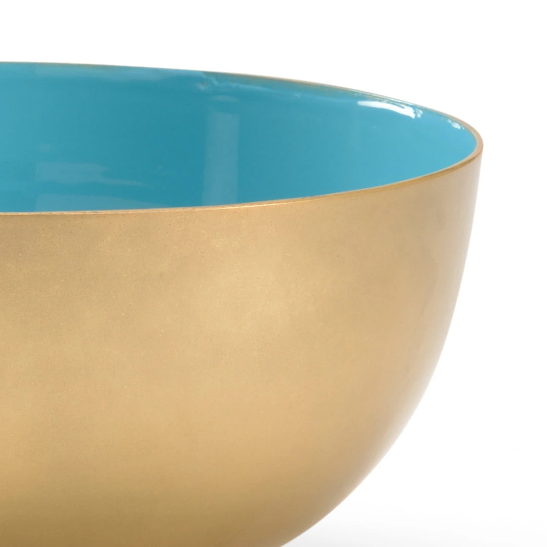 Aqua Enamel Bowl With Gold Exterior. Not For Food Use. For Decoration Only. Pairs With 302084 And 302085.