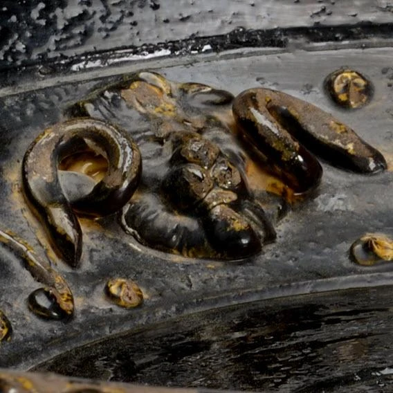 Aged Black Italian Ceramic Centerpiece With Raised Decoration