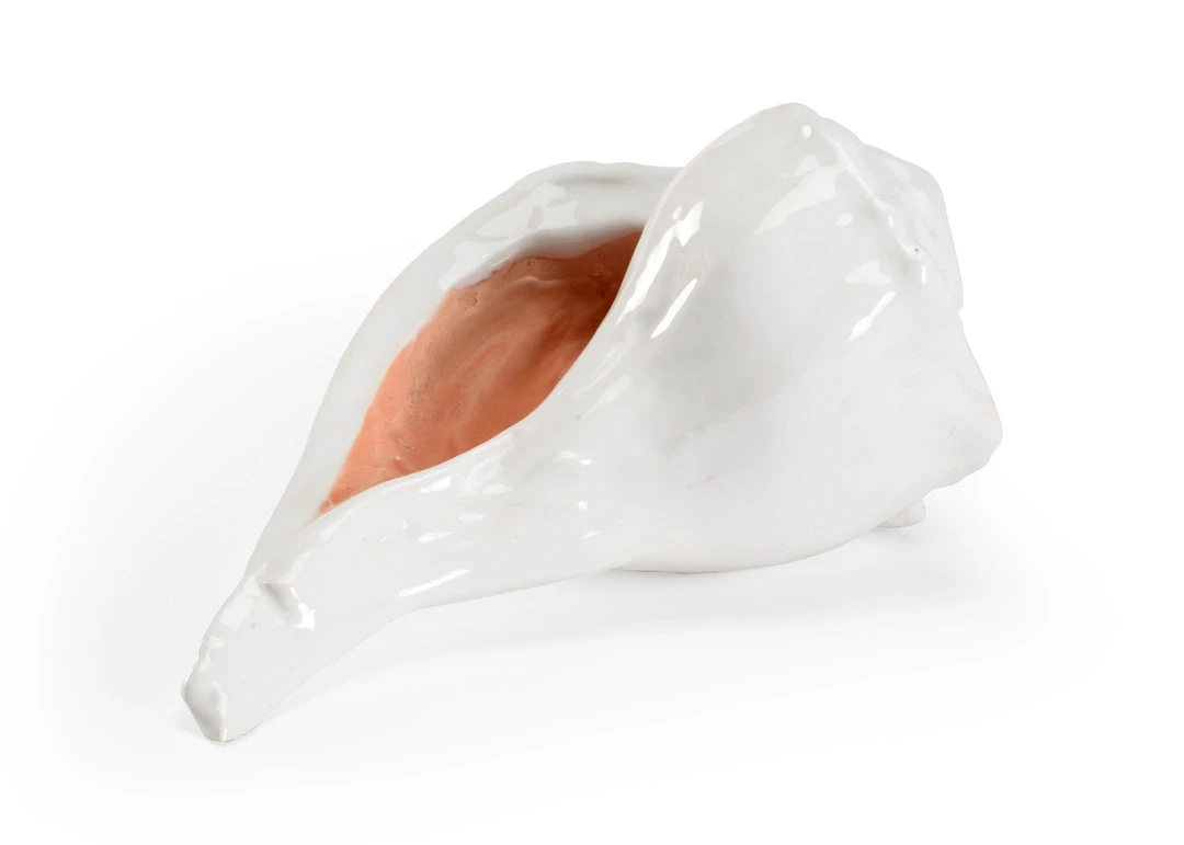 Decorative White Italian Ceramic Shell With A Coral Glazed Inside.