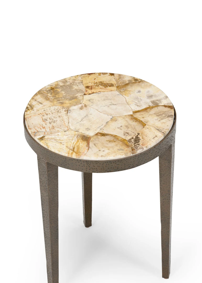 Natural Petrified Wood Top Hammered Iron Base With Rust Finish