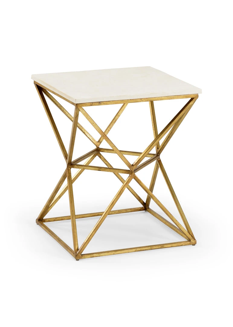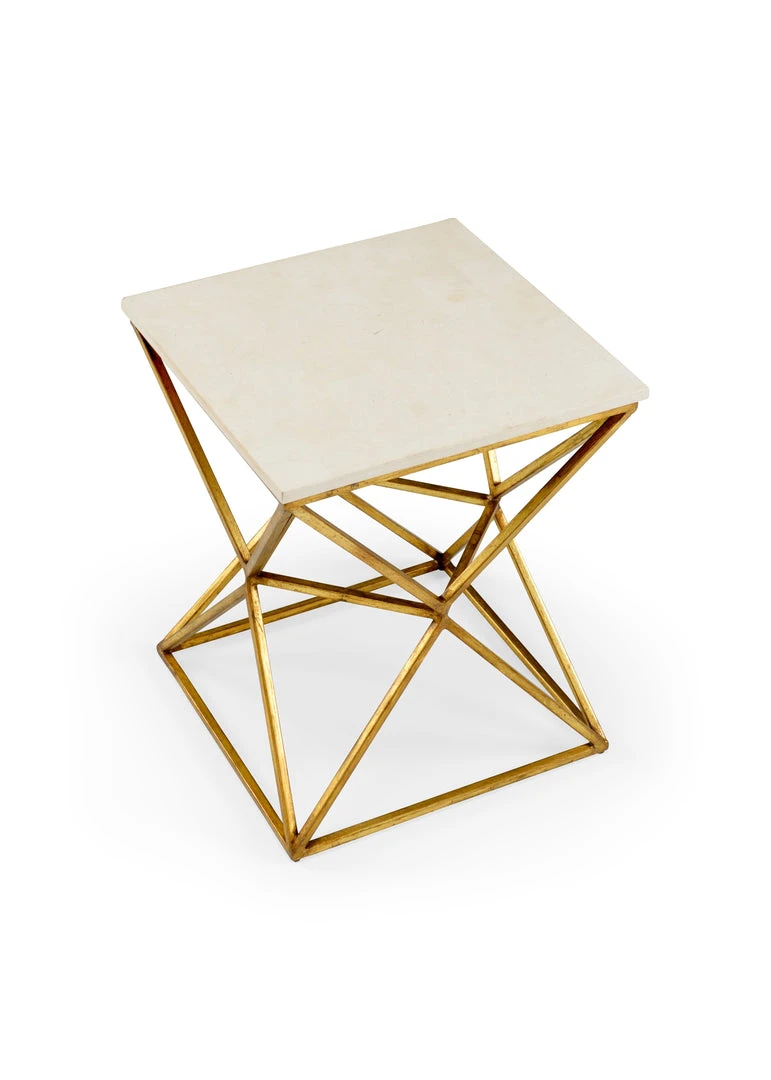 Small Side Table With Natural Stone Top And Iron Base – Gold Leaf.