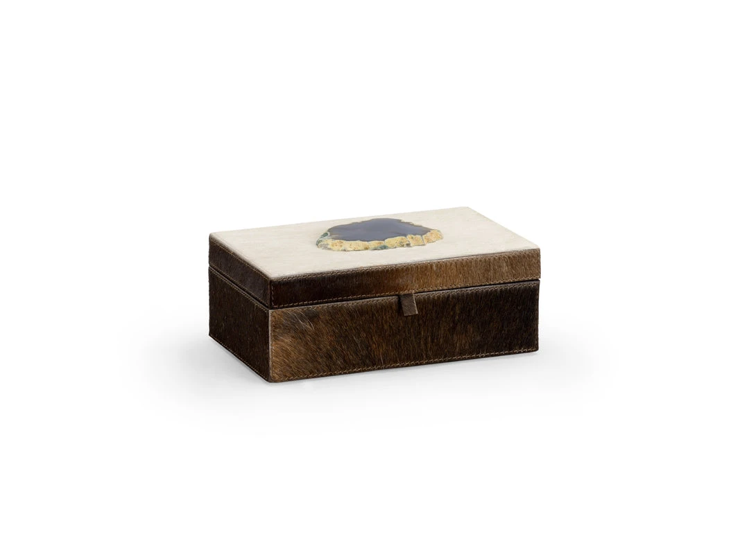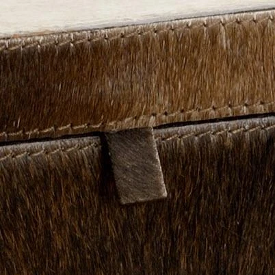 Brown And Cream Hair On Hide, Natural Gray Agate Embellishment, Black Faux Suede Liner