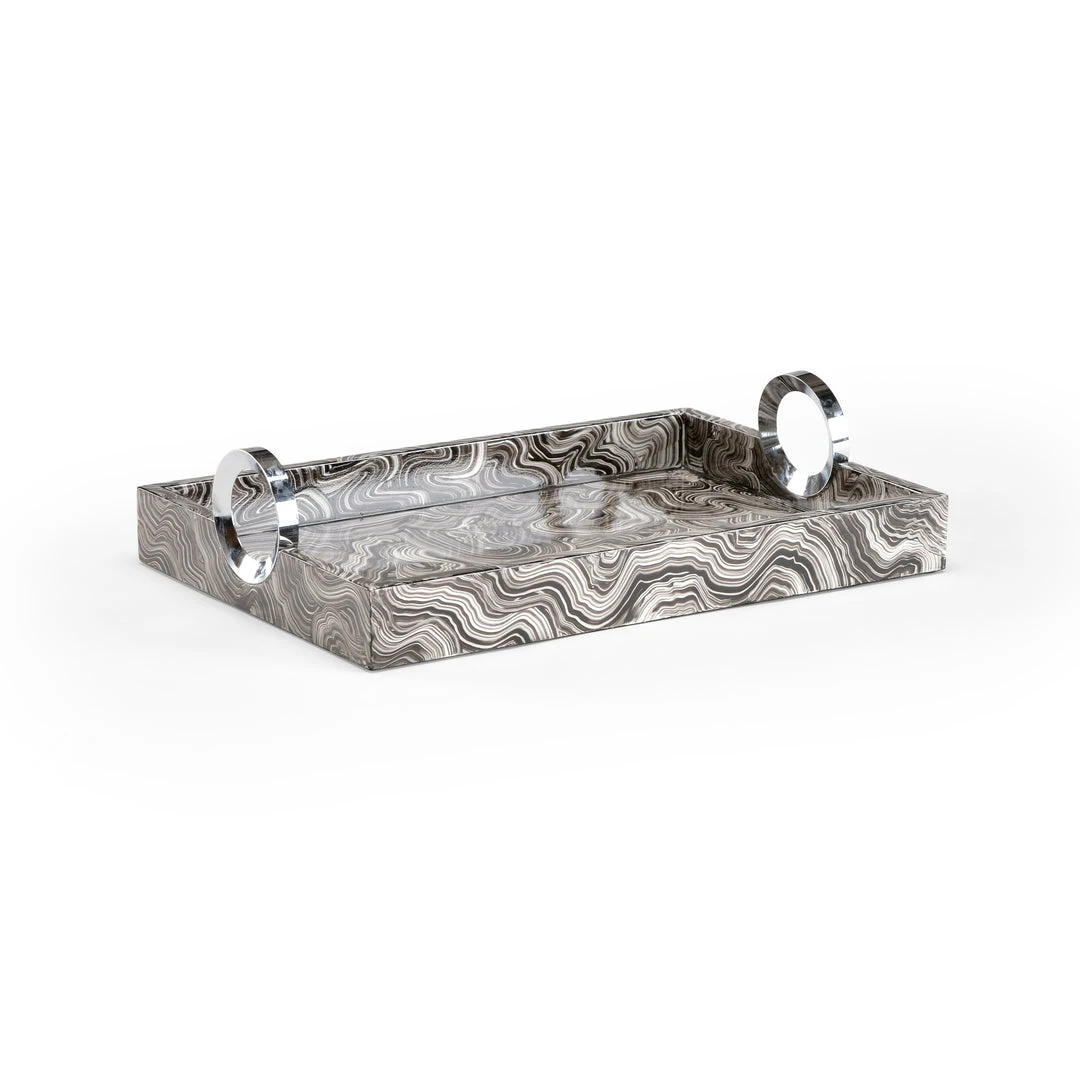 Serve Guests At Your Next Dinner Party With This Mesmerizing Handled Wood Tray. This Hand Painted Tray Features A Modern Gray Marblized Pattern With Round Polished Nickel Handles. It May Also Be Used On An Ottoman In Your Living Area To House The Remote Or Other Small Accessories.