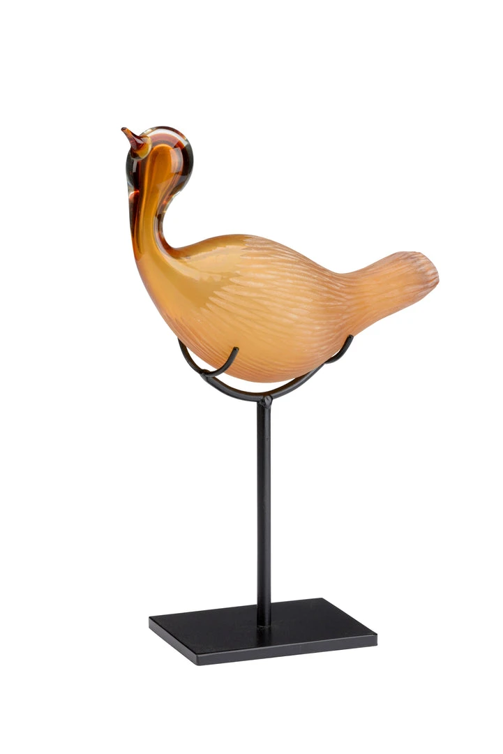 Frosted Amber Glass Bird On Black Iron Stand