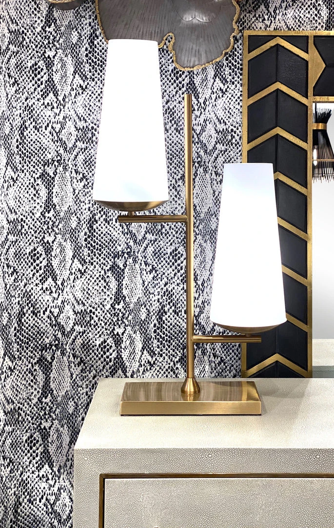 Embossed Gray Leather On Wood Antique Brass Finish On Bar Handles.
