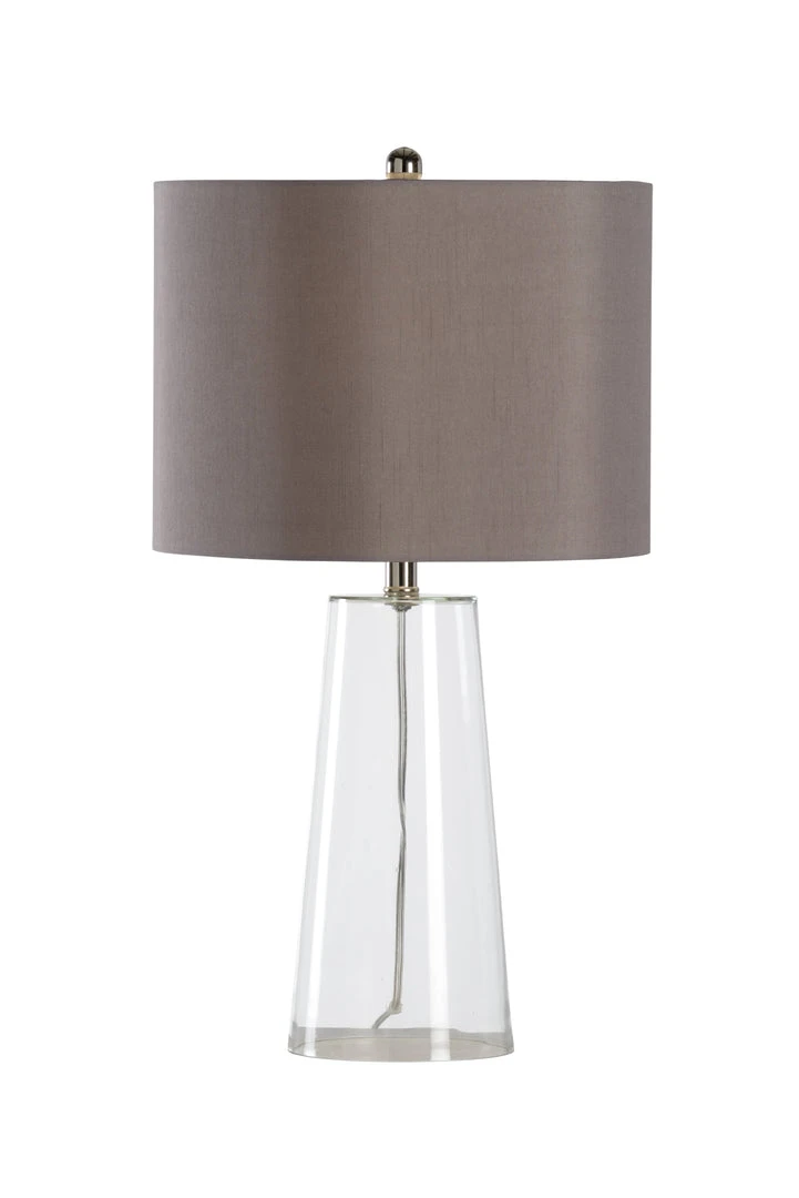 The I See You Shine Lamp Is Clear Glass Body With A Taupe Shade.