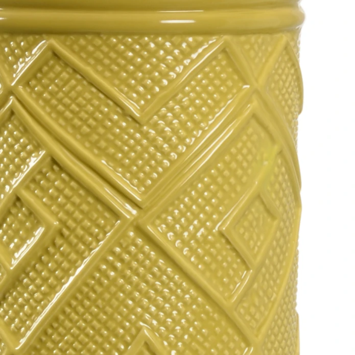 Interpreted From An African Kuba Cloth,this Textural Pattern Translates Modern In Our Kuba Lamp In A Mustard Finish