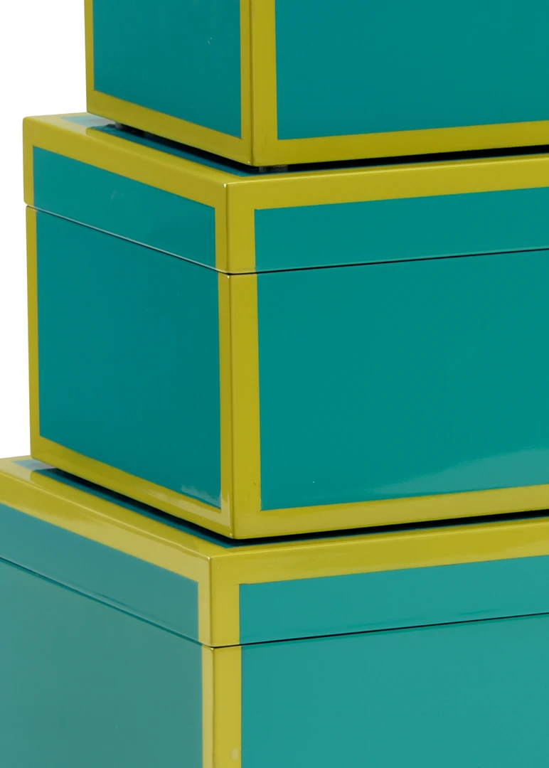 Set Of 3 Nested Wood Composite Boxes With Lids. High Gloss Lacquer Finish. Medium: 10.75 X 6.75 X 5″H, Small: 9.75 X 5.75 X 4″H