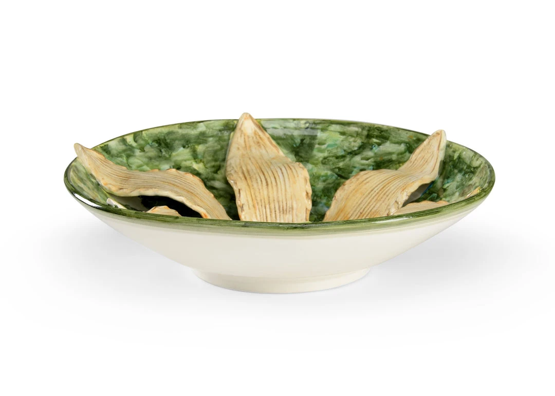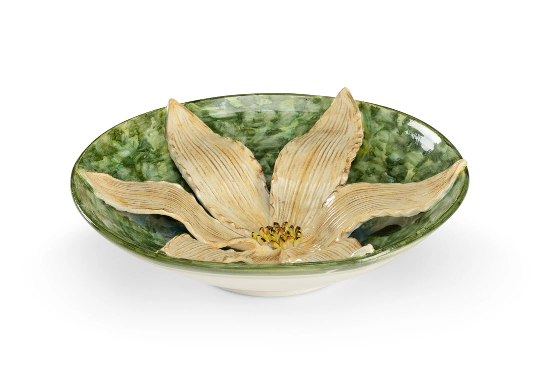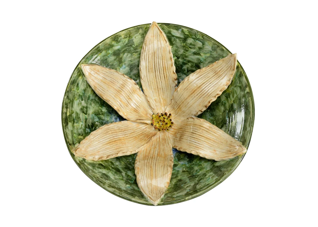 Antique White Lily Italian Ceramic On Green Ceramic Centerpiece