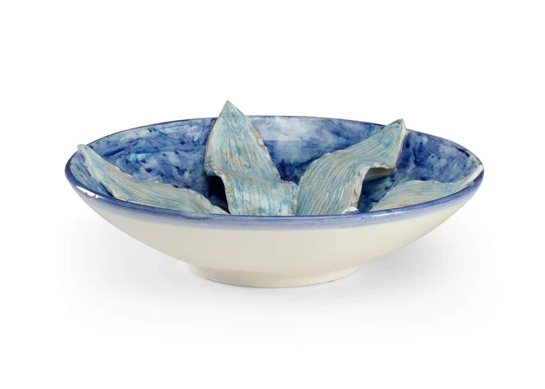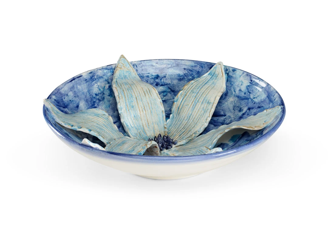 Aqua Italian Ceramic Lily On Blue Ceramic Centerpiece