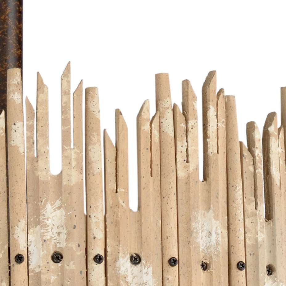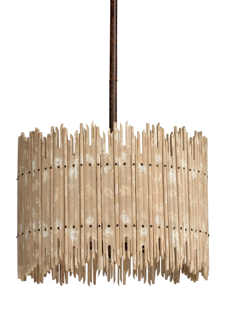 Rustic Modern Chandelier Featuring Natural Weathered Wood Strips And Four Lights. Extention Rod 3-12″ 1-6″