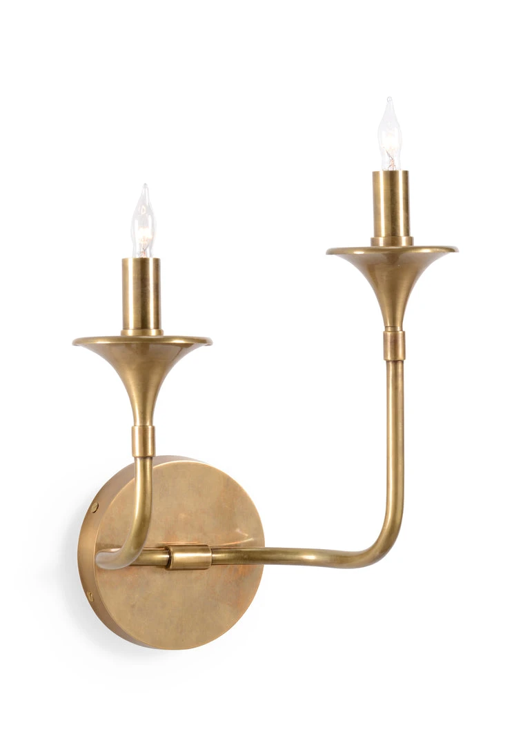 The Loren Is A Simply Elegant Antique Brass Two Light, Two Arm Wall Sconce.