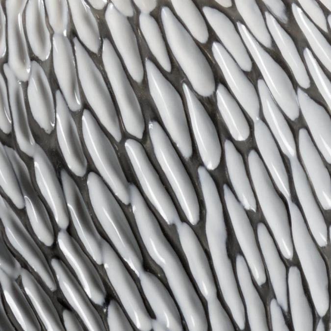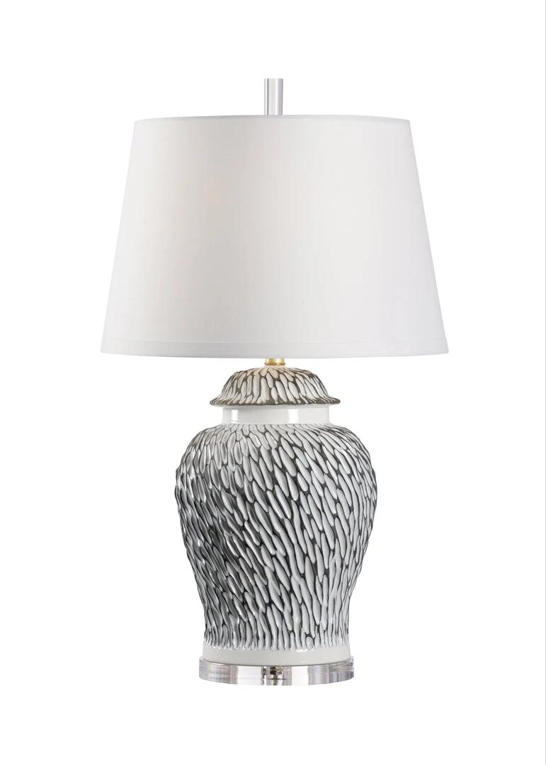 Gray And White Hand Sculpted Italian Ceramic Urn On Clear Acrylic Base