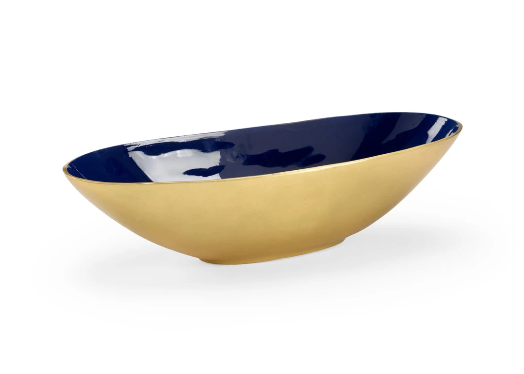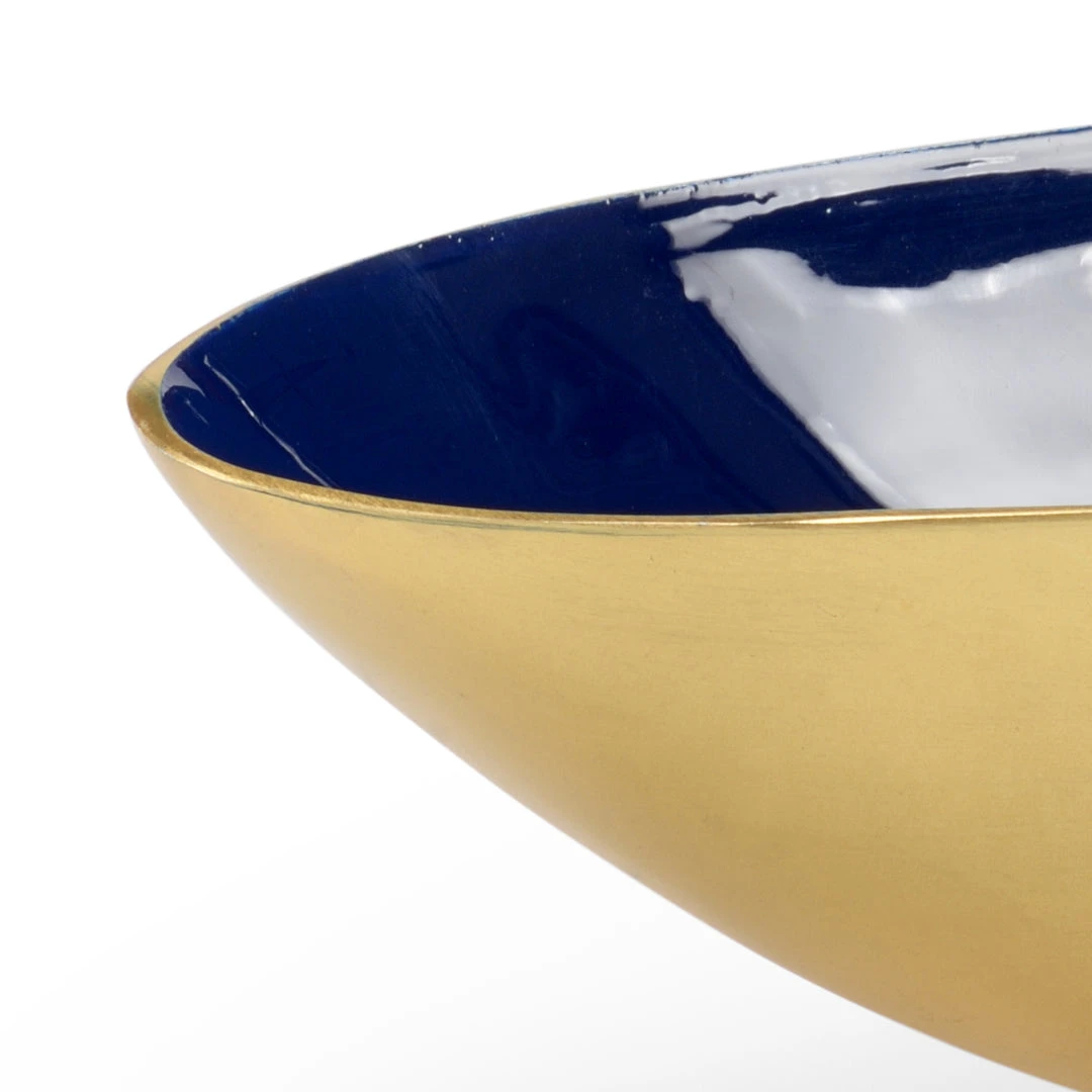 Oval Bowl Crafted In Navy Enamel With A Gold Exterior. Not For Food Use. For Decorative Use Only.
