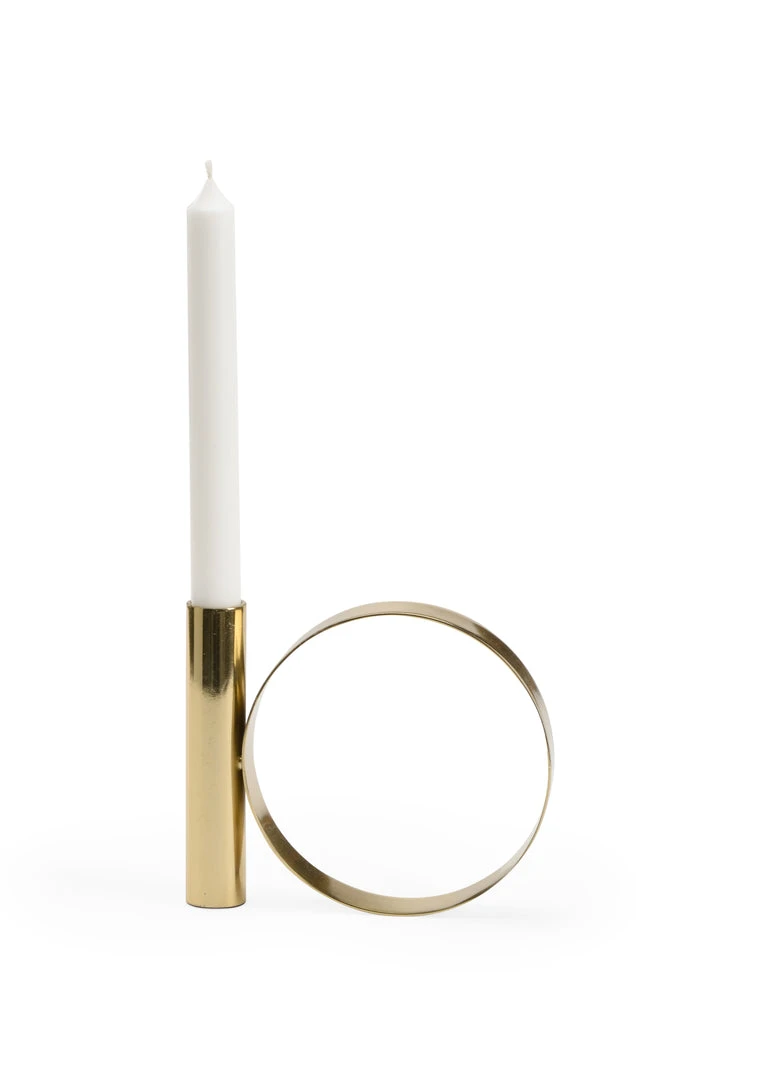 Polish Brass Finished Iron Has Been Forged To Create A Sculptural Candlestick. Add A Taper Candle, Not Included, To Create A Warm Glow Throughout Your Space.