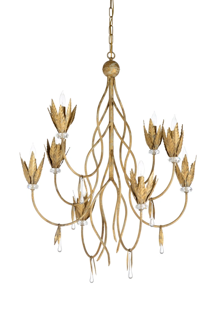 Aged Gold Leaf 8 Lights Chandelier With Clear Crystal Details