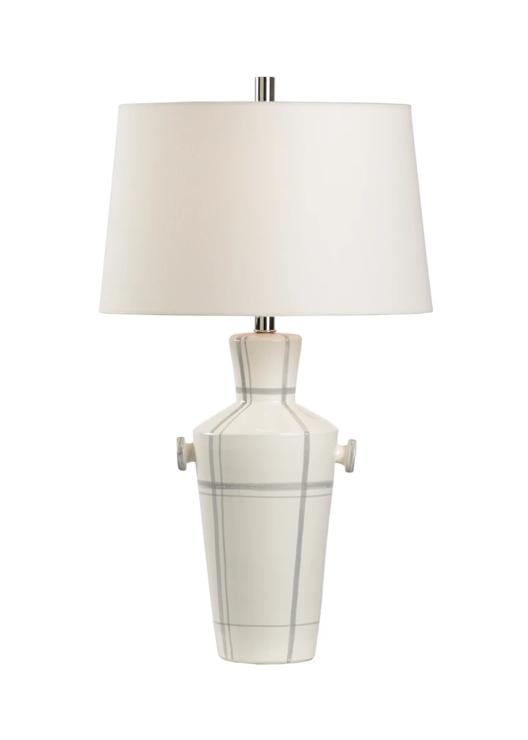 Hand Thrown Italian Ceramic Urn With Attached Handles. Chalk Glaze With A Gray Plaid Design. Designed By Vietri.
