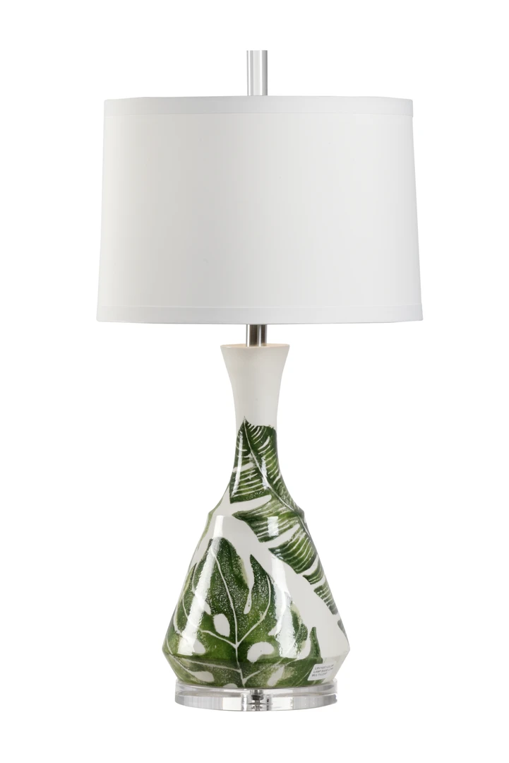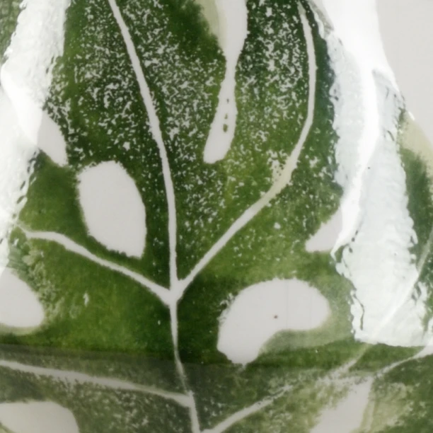 Tropical Leaves In Green Glaze Over White Italian Ceramic With A Clear Acrylic Mounting. Designed By Vietri.
