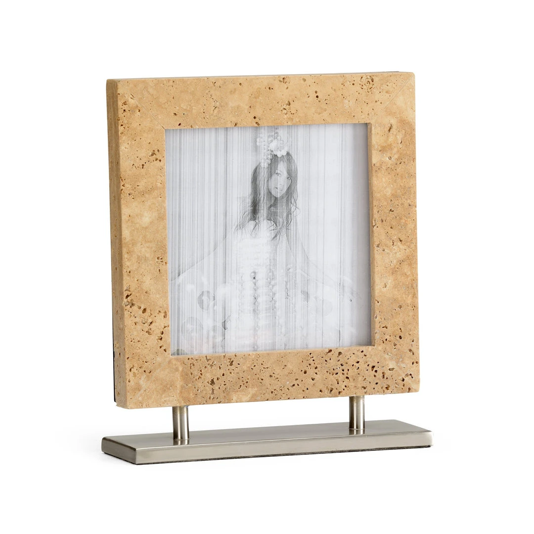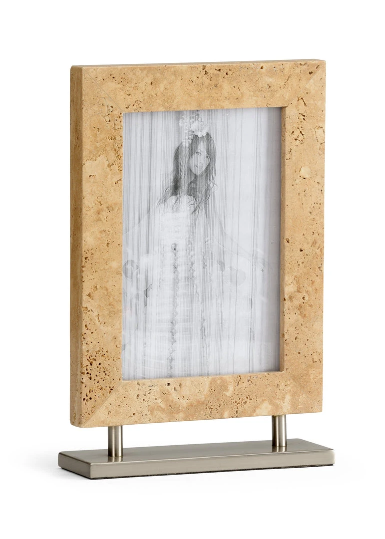 Stone In Natural Sand Color Photo Frame With Polished Nickel Stand
