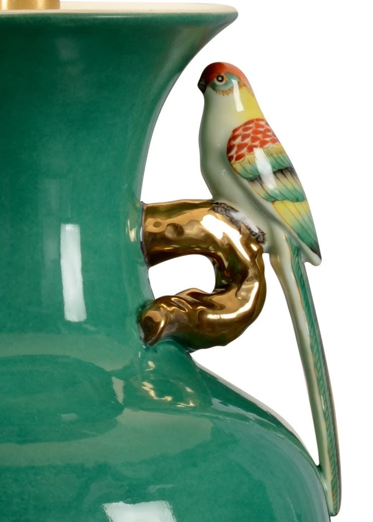 Green Porcelain,metallic Gold Handles,handpainted Birds