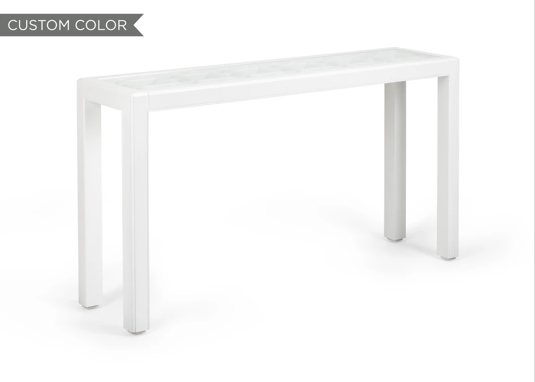 Wood Trellis Console Table With Clear Glass Top Custom Painted In Customer’s Selection Of Any Benjamin Moore Paint Color. Must Provide Color Name And Number