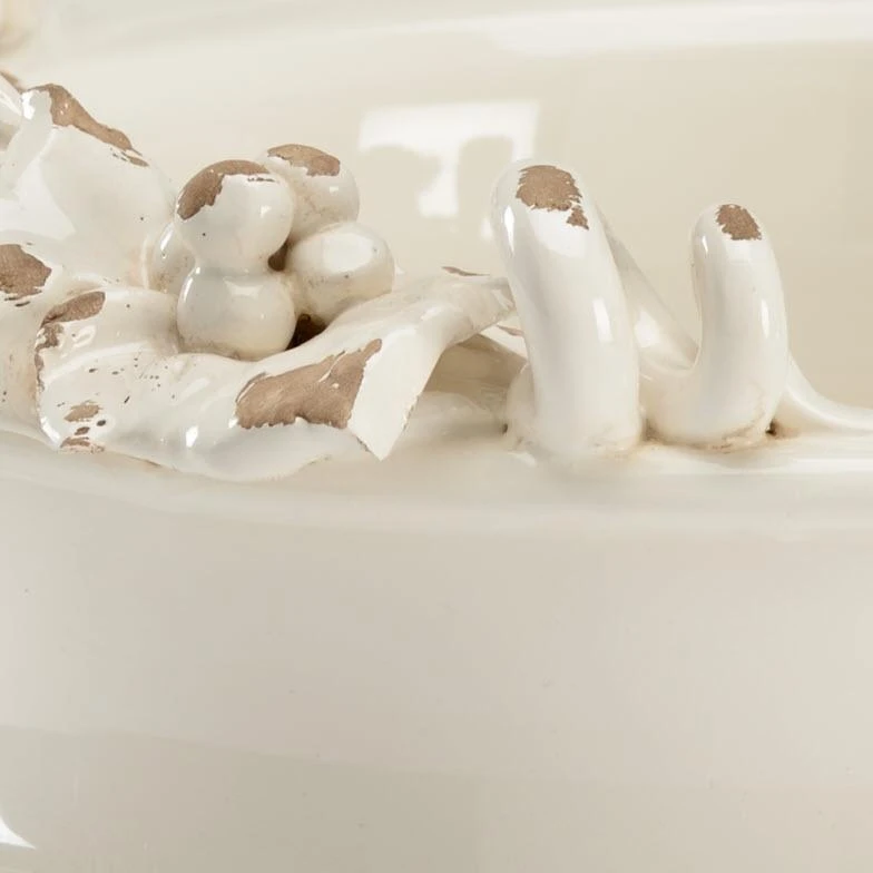 Distressed Cream Italian Ceramic Centerpiece With Sculpted Grapes Decoration