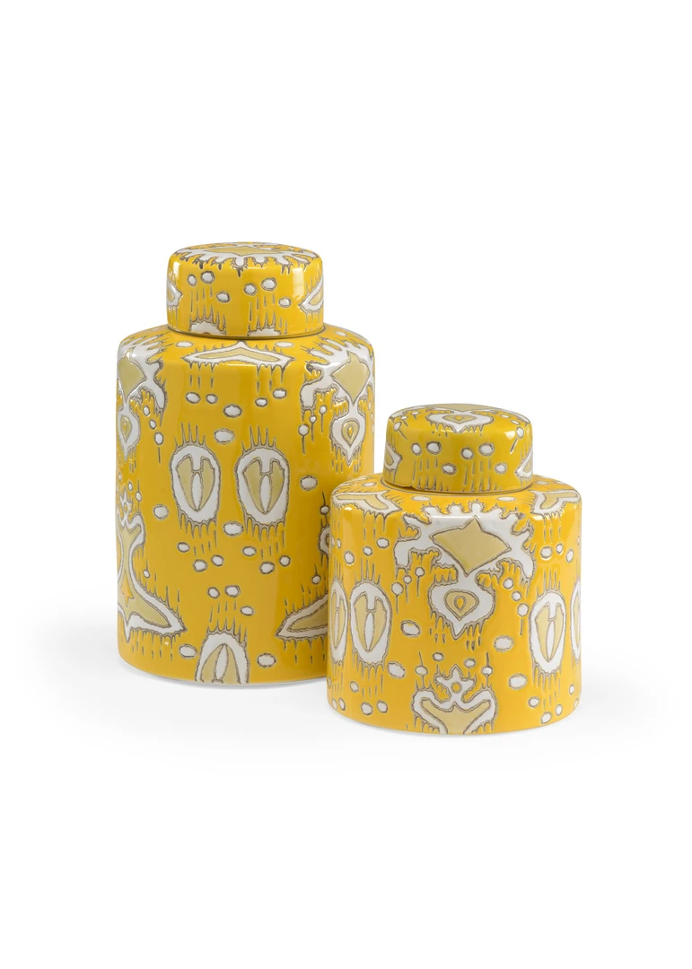 Yellow,white And Tan Porcelain Canisters Set Of 2